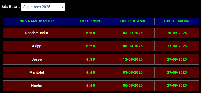 6 | untung | 2:20 | 01-10-2025 | 02-10-2025 |